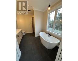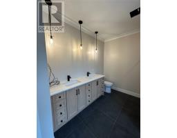 Wexford Estates is the newest upscale subdivision in Logy Bay Middle Cove Outer Cove! Just minutes from the city and never far from the beach. Stunning, ranch bungalow with a contemporary exterior, dark siding accents on the front facade and black front windows accompanied by a beautiful brick accents, double attached garage on a 1 acre lot. Open concept main floor and walk-out basement that overlooks the peaceful quiet walking trails. 9 foot ceiling height on the main floor. Large kitchen with a butlers pantry, dining and family room area with vaulted living room ceiling. Patio doors out to a good size covered deck that looks out over the walking trails. 3 nice size bedrooms with primary bedroom ensuite with double sink vanity soaker tub and tiled shower and two walk-in closets. Premium trim package throughout. Built in sound system. (Speakers). Hardwood floors and heated ceramic tile in foyer and all wet areas. Hardwood stairs. Kitchen features lots of cabinets and counter space, plus a large island and a big walk-in pantry. There is a garage door at the back of the house which goes into the 8' basement. Ideal for storage of large items like cars, boats, quads etc. Approximate completion date would be the end of October. 400 Amp Electrical Service and a full 3.5 Ton Heat Pump for heating and cooling. 8 Year LUX New Home Warranty and 1 Year Builders Warranty. (id:47656)