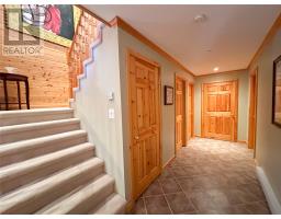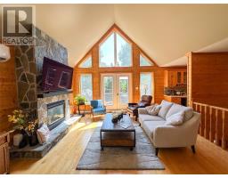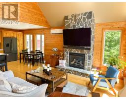 Located in a private setting on a one acre lot, 13 River Grove is a stunning three bedroom, four bathroom chalet in the gated community of Humber Valley Resort. This home has undergone major recent upgrades including a kitchen redesign with added pantry space, top of the line Bosch kitchen appliances including the home smart phone connected Bosch dishwasher and fridge, Bosch microwave and induction stove, modern stainless sink, solid quartz countertops and an added window to make the space bright and welcoming. The open concept home design offers vaulted ceilings, mini split for AC in the summer months, a stone propane fireplace, floor to ceiling windows and each bedroom has ensuites and walk in closets. The primary bedroom has access to the large deck which has recently been improved with fresh stain, new railings and posts and it's the perfect location to overlook to park like setting of the garden and property. The five hundred square foot detached garage is a bonus for storing all of your recreational vehicles and the lot also offers plenty of parking. The lower level of the home has a charming porch entry and plenty of storage space. The home also has a brand new high end Electrolux washer and dryer, new fibreglass hot water tank, new eavestrough and fresh paint/stain on the entire exterior of the home and decking. 13 River Grove is just minutes from world class salmon fishing on the Humber River and easy access to the snowmobile groomed trail system and ATV trails. This home is ideal for family living or a vacation rental property. Humber Valley Resort restrictive covenants and agreements apply to the purchase of this property. There is NO HST applicable to this sale. (id:47656)