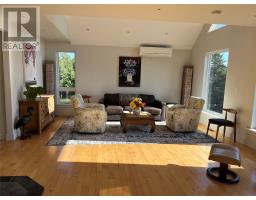VIEW PROPERTY! PRIVACY GALORE! Spectacular views of Tors cove pond from this adorable A Frame home just 35 minutes from St Johns. This amazing home offers an open concept design main floor, kitchen, dining, and living room area with 16 ft vaulted ceilings and a cosy woodstove for great ambience. Delightful kitchen with modern decor cabinetry /center island, two average sized bedrooms with full bath, as well as main floor laundry. This property is cheerful and bright with an abundance of natural light shining through the oversized windows accentuating local pond views. On the second level, you will find the master bedroom complete with en suite /heated floor and double closets . The lower level has all aboveground windows with a walkout basement where you will find a TV room and a large family room as well as an in-house 13 x 26 garage for storing all those recreational toys or workshop area. This is a meticulously well cared for property with gleaming maple hardwood floors throughout. Lots of attention to detail. This property offers three sources of heat, mini split ,electric furnace as well as a woodstove. New hot water tank . Exterior is spruce clapboard stained with a 3/4 in cavity. New septic in recent years. Just a few minutes off route 10 in beautiful Tors Cove . (id:47656)