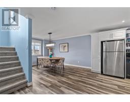 Welcome to this beautiful jelly-bean row style townhouse, ideally situated in the heart of the city! Enjoy an unbeatable location just minutes from Memorial University, Avalon Mall, St. John’s Farmers Market, Old Dublin Bakery, local grocery stores, and the downtown core — everything you need right at your doorstep. Step through the welcoming foyer into the ground level, featuring a full-sized garage, versatile bedroom or office space, and a mudroom with an oversized closet at the rear — perfect for everyday organization. Designed with family living and entertaining in mind, the main level showcases an open-concept floor plan with a custom kitchen complete with stainless steel appliances, a bright living room with patio doors leading to the deck, a dining area and a 2-piece powder and laundry room. Thoughtful custom millwork and pot lighting add warmth and sophistication throughout. Upstairs, you’ll find three generous bedrooms, including a primary bedroom with ensuite bath and oversized closet, plus a spacious main bathroom. This property is part of a well-maintained condominium community with an approximate monthly condo fee of $300, covering lawn maintenance, snow and garbage removal, as well as exterior upkeep including siding, windows, and roof. Recent upgrades (2024) include a brand-new kitchen and flooring, adding even more value and style to this already stunning home. Don’t miss your chance to own this turnkey townhouse in one of St. John’s most desirable central locations! (id:47656)