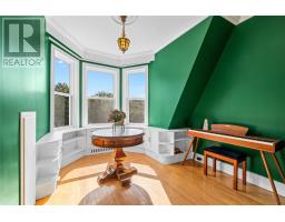 Also known as Angel House, this remarkable Second Empire-style residence, c.1879, is a rare & elegant example of 19th-century craftsmanship. Built by the Hon. James Angel—prominent in Newfoundland’s industrial history & associated with the United Nail & Foundry—the home retains many original features while offering modern comforts. Set on nearly 1 acre of professionally landscaped grounds, the property is surrounded by mature trees & heritage plantings, including cherry, apple, elm, walnut, lilac & rhododendron. The exterior showcases a five-sided Scotch dormer atop the mansard roof, ornate millwork & grand bay windows. A bright front porch leads to a stately foyer & large principal rooms: formal living & dining rooms, a cozy den, & a beautifully updated kitchen. The main floor features original back-to-back fireplaces, intricate woodwork & a graceful staircase. The kitchen blends classic style with modern functionality—ceiling-height cabinetry, stainless steel appliances (double wall oven, propane stove), farmhouse sink, large island, & an adjoining sitting area with access to a side porch. A powder room completes the main floor. Upstairs offers 3 spacious bedrooms, each with its own ensuite. The primary suite includes a walk-in closet & spa-like ensuite with soaker tub, custom shower & in-floor heat. A cozy sitting area with bay window overlooks the grounds. The basement includes a rec room with fireplace, full bath, laundry, & a bonus room currently used as an artist's studio. Recent updates include some plumbing & electrical, chimney & fireplace maintenance, new front steps & decks, & 2024 siding & window replacements. Angel House blends historic charm, modern convenience & timeless elegance—just minutes from all amenities. A must see!! (id:47656)