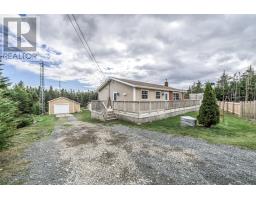 Beautiful Portugal Cove – Just minutes from St. John’s Airport! This terrific, fully-developed 3-bedroom, 1.5 bath home offers both peace of mind and seclusion. Nestled on almost 3/4 of an acre and surrounded by forest on a private wooded laneway, she is proud to offer an enormous deck, detached garage, and tons of upgrades, this great property is a must see. The main floor features a remodeled birch kitchen (2021), spacious living and dining areas, with some hardwood and new vinyl plank flooring (2023). The rebuilt basement (2017) includes a huge rec room with wood stove, wet bar, half bath, laundry, ample storage and a walkout to the backyard. Outside is a massive, partially fenced yard and you’ll be pleased to find a 28x18 wired, insulated garage with 10’ door with an attached wood shed, plus an extra shed (2019). Major updates include: new deck (2020), basement door (2021), hot water boiler (2022), water pump (2022), siding, doors, and 200amp electrical panel (2011), and new septic tank (2014) to name a few. Country charm, modern upgrades, and loads of space to play — all just minutes from the city! (id:47656)