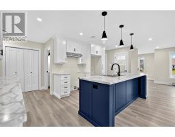 Welcome to 43 Jack Pine Drive, a modern open-concept lake view bungalow that has just finished construction in the scenic Northern Pines development of Spaniard’s Bay. Comes with the convenience of town water and sewer service, along with underground electrical services which offers a clean finished appearance. This 3-bedroom, 2-bathroom home features striking black-framed windows, a dark contemporary exterior accented with eye-catching decorative stone, and a serene view of the lake just across the street. Picture yourself in this gorgeous new home over the holidays entertaining family and guests, while dancing around in the kitchen and sipping on a coffee watching the snow fall outside. The thoughtfully designed layout offers a spacious open concept, with a mini-split helping to efficiently heat or cool the home. The bright modern kitchen contains beautiful white shaker-style floor to ceiling cabinetry, an over-sized center island with built-in sink, and a walk-in pantry. With black accented hardware and fixtures throughout. Both the living room and primary bedroom is situated at the front wing of the home, offering a view of the lake. The primary bedroom has its own 4 piece ensuite and walk-in closet. The additional two other bedrooms are located at the rear of the home, along with the centrally located laundry and main 4 piece bathroom. Outside you have rear-yard vehicle access for your future detached garage. Built with quality in mind, the home features 5/8” plywood exterior walls and energy-efficient foam insulation. Surround yourself with the beauty and adventure of country living—kayaking, fishing, boating, ATV riding, and snowmobiling are all just outside your door. Located only 10 minutes from major amenities in Bay Roberts or Carbonear, and less than an hour to St. John’s. Don’t miss your chance to call this beautiful new home yours. Includes a 10-Year Atlantic Home Warranty. HST is included in the purchase price with rebate to the vendor on closing. (id:47656)