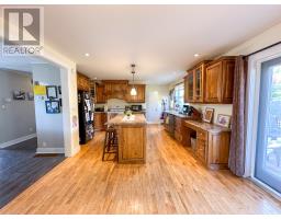 Located in a quiet family neighbourhood on the west side of Corner Brook, 5 Edinburgh Street is a charming and cozy three bedroom, one bathroom bungalow with an open concept layout. The spacious kitchen features an eat in island, solid wood cabinetry and flows into the dining room space complete with glass garden doors creating a bright and inviting living space. Laundry is ideally located on the main floor for those looking to avoid steps for everyday living. The basement of the home has a finished office, plenty of storage and potential for a workshop or hobby space. The 200 amp panel has room for a mini split , the heating source has been updated to an electric boiler/hot water radiant system and there is a wood-stove for a secondary cozy heat source. The private back garden is fully fenced, a new back deck was constructed in 2024 and the double driveway allows for plenty of parking space. Book your viewing to see this charming home today! (id:47656)