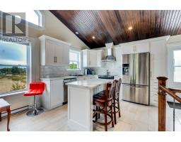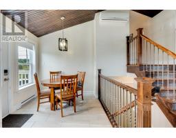 Located in the heart of picturesque Cupids, this beautifully maintained home sits on a generous half-acre corner lot, offering space, privacy, and modern comforts. The front entrance welcomes you with a convenient closet and leads into a bright, open-concept living room and kitchen area. Vaulted ceilings with recessed pot lights create an airy, spacious feel, while large windows fill the home with natural light. The kitchen, fully renovated in 2024, features sleek white modern cabinetry, a stylish backsplash, and a functional island—perfect for both family living and entertaining. Upstairs, you'll find three spacious bedrooms and a well-appointed three-piece bathroom. The lower level offers even more living space, including a cozy rec room with a fireplace, a beautiful second three-piece bathroom with a relaxing soaker tub, a laundry area, and ample storage. The home also includes an attached garage, ideal for storage or recreational toys, and two energy-efficient mini splits for year-round comfort. A large back patio offers the perfect setting for outdoor gatherings, and the paved driveway adds convenience and curb appeal. Ceramic and hardwood flooring run throughout. This property blends modern updates with the timeless charm of Cupids. Whether you're looking for a full-time residence or a weekend retreat, this home is ready to welcome you. (id:47656)