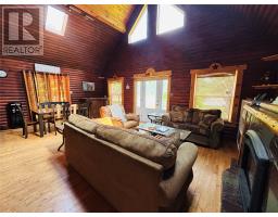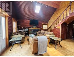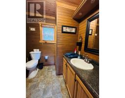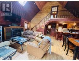Welcome to 56 Loop Road in the Town Of Terra Nova! An opportunity awaits to own a beautiful piece of property in this highly sought after area. This is a stunning 2 bedroom chalet on over a 1/2 acre of land. Location is ideal with immediate access to the NL Railway Trail System leading across all of NL. Beach and swimming area is just a 5 minute walk. This cabin boasts an open concept feel with full kitchen with sit up peninsula with stools that leads into the dining area. The spacious living room with propane fireplace is perfect to sit back on those winter nights just back from a day in the woods to relax by the fire with family and friends! Primary bedroom is in the loft area on the upper level. A second bedroom is on the main with bathroom as well. A woodstove is located in the mudroom making it ideal to hang your winter jackets and dry. It is perfect for those chilly winter nights. There is also a newly installed Heat Pump to off set heating costs yet have air conditioning in the summer. There is a large double garage measuring 23x23 for all the toys. Nice private yard with firepit to enjoy times around a campfire. Property comes fully furnished! Looking for an investment property? This cabin has been generating money as currently being used as an successful Airbnb business. Extra large lot that can easily hosts another building or family visiting with a camper. Don't miss out on this fantastic opportunity to own a cabin in the highly sought after Town Of Terra Nova! (id:47656)