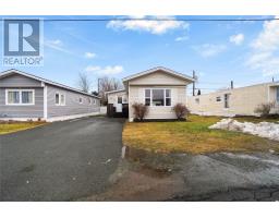 Welcome to 74 Meadowbrook Drive, a beautifully renovated mobile home tucked away on a quiet street in the highly desirable Goulds. This move-in-ready property showcases true pride of ownership, with stylish updates and modern finishes throughout. Step inside through the welcoming front porch, complete with bonus storage room, and be instantly impressed by the stunning eat-in kitchen featuring ample cabinetry, stainless steel appliances, and loads of charm. The kitchen flows seamlessly into the cozy, modern living room, highlighted by a built-in fireplace and mini-split heat pump for efficient year-round comfort—an ideal space for relaxing or entertaining. Down the hall, you’ll find two generously sized bedrooms and a beautifully updated main bathroom, while the elegant primary bedroom offers the added convenience of its own private 2-piece ensuite. Stackable laundry is thoughtfully located just outside the primary bedroom, along with a functional mudroom providing access to the backyard. Outside, enjoy a private patio, fully fenced yard, and storage shed—perfect for summer BBQs, pets, or quiet evenings at home. Conveniently located close to schools, parks, walking trails, and bus routes, this thoughtfully updated home offers the perfect blend of comfort, functionality, and location at an affordable price point under $175,000. As per Seller’s Direction, no conveyance of offers until Sunday, February 1st at 4:00 PM. Offers to remain open until 9:00 PM the same day. (id:47656)