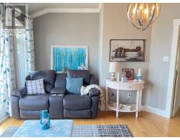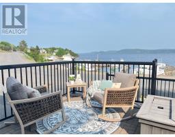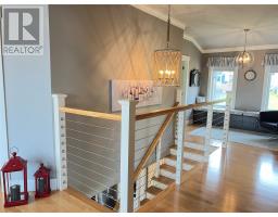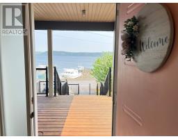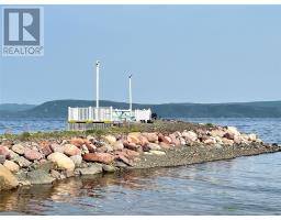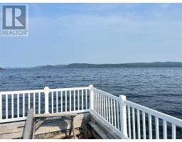 If you desire the Hampton's, NY style oasis in Springdale, NL you found it! From the moment you pull into the large paved driveway leading to multi level patios overlooking the pristine waters of Halls Bay you will feel at home with the calming sound of the water. As you enter this executive style home you will be greeted with an open concept space bright with natural light. The main floor features a spacious living room with propane fireplace, leather cork flooring and floor to ceiling windows with expansive views, dining area, a chef's dream of a kitchen equipped with propane range, large island, walk in pantry and crisp white custom cabinets. Also on the main floor is a powder room, primary bedroom with walk in closet and 3 piece ensuite. As you ascend the hardwood staircase you are met with an elegant seating area with sliding doors leading to the upper deck offering endless views including your own wharf. Two bedrooms, full bath and laundry room complete the upper level of this stunning home. Heating options include a mini-split, electric and propane. Basement is unfinished offering a ground level attached garage. Lot is beautifully landscaped with multiple shrubs and trees, stone walkways and retaining wall. Sale to include fridge, propane range, dishwasher, washer, dryer, custom blinds and a wharf located directly across the street. The Let this beautiful home wrap you in luxury and peaceful leisure. (id:47656)