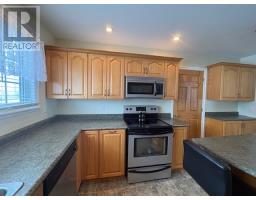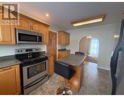 This three bedroom, one and a half bathroom home is a half duplex on the old American Air Force Base in Stephenville. These homes were built to last and this one has had some renovations like a brand new kitchen with a moveable island and opened up into the dining room/living room which gives it easy flow like an open concept newer home. The original hardwood floors are in good condition. The kitchen has linoleum flooring, pot lights, stainless steel appliances, including a fridge, stove, dishwasher and built-in microwave. The oak cabinets are in great shape and the pantry has pull-outs to make it easier to access the items in the back. The stairs have carpet and two bedrooms upstairs have carpet. The full bathroom upstairs has been completely renovated as well. This home has vinyl siding, windows and doors. There is a patio door from the dining room leading out onto the large patio and the back yard is completely fenced, which is great for smaller children and pets. There is an attached single car garage with an electronic door opener and the front step has a new smaller patio as well. There is a view from this home overlooking some of the town and the bay, and the lot has mature trees and landscaping already completed. This is a great find and with the Seller's Direction in place, we are having viewings for a full week before taking offers, so call an agent today to book your personal viewing. As per sellers direction no conveyance of any written offers prior to 6:00pm on February 9th, offers are to remain open for acceptance until 10:00pm on February 9th. (id:47656)